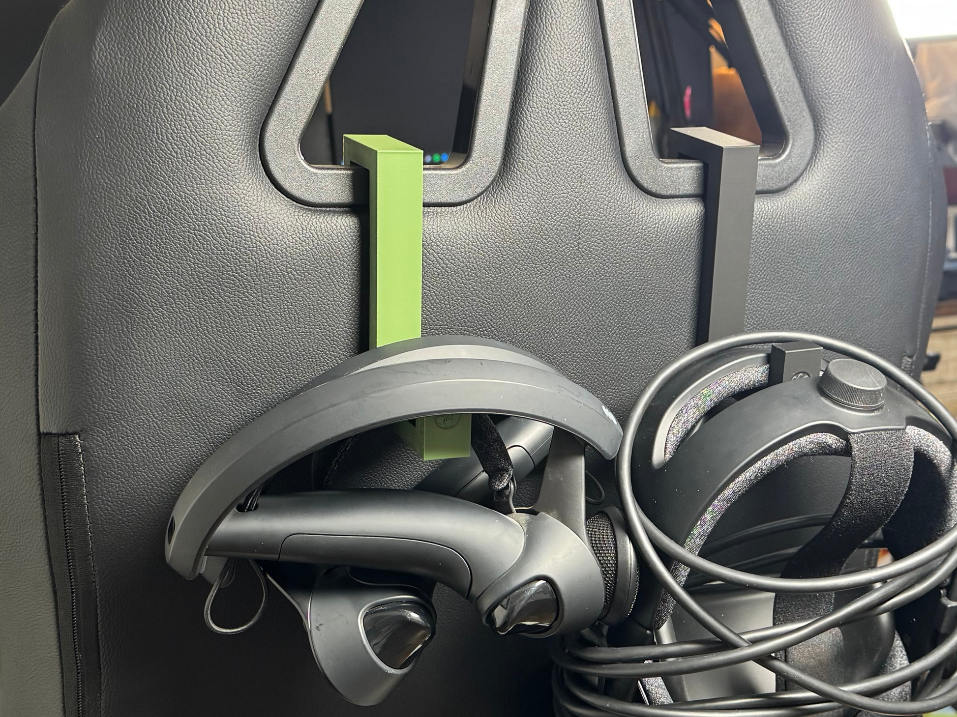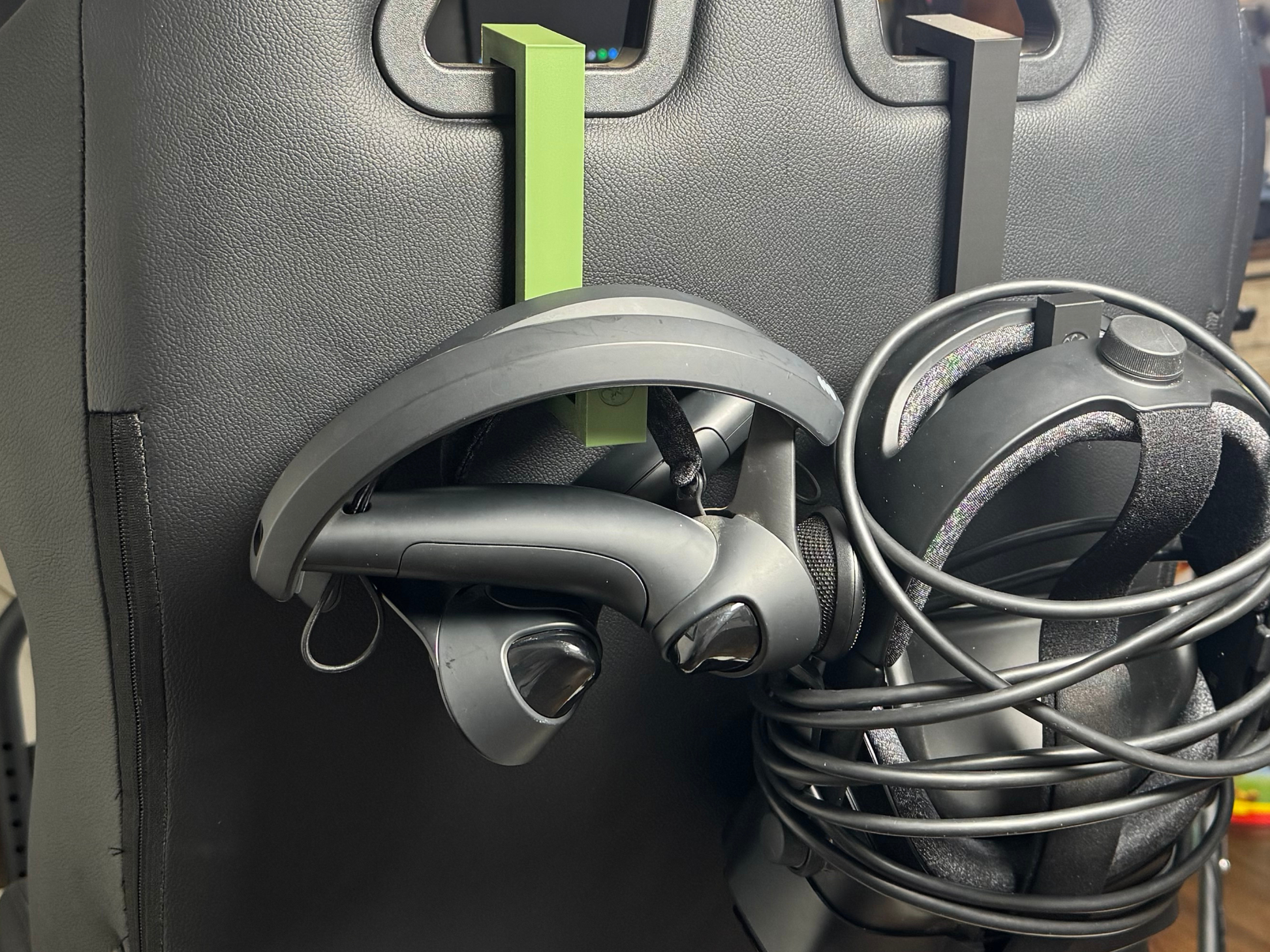 This wasn’t designed as a generic wall hook — it was made to solve a real sim rig problem. If you run VR full-time, this mount keeps your cockpit organized and race-ready.