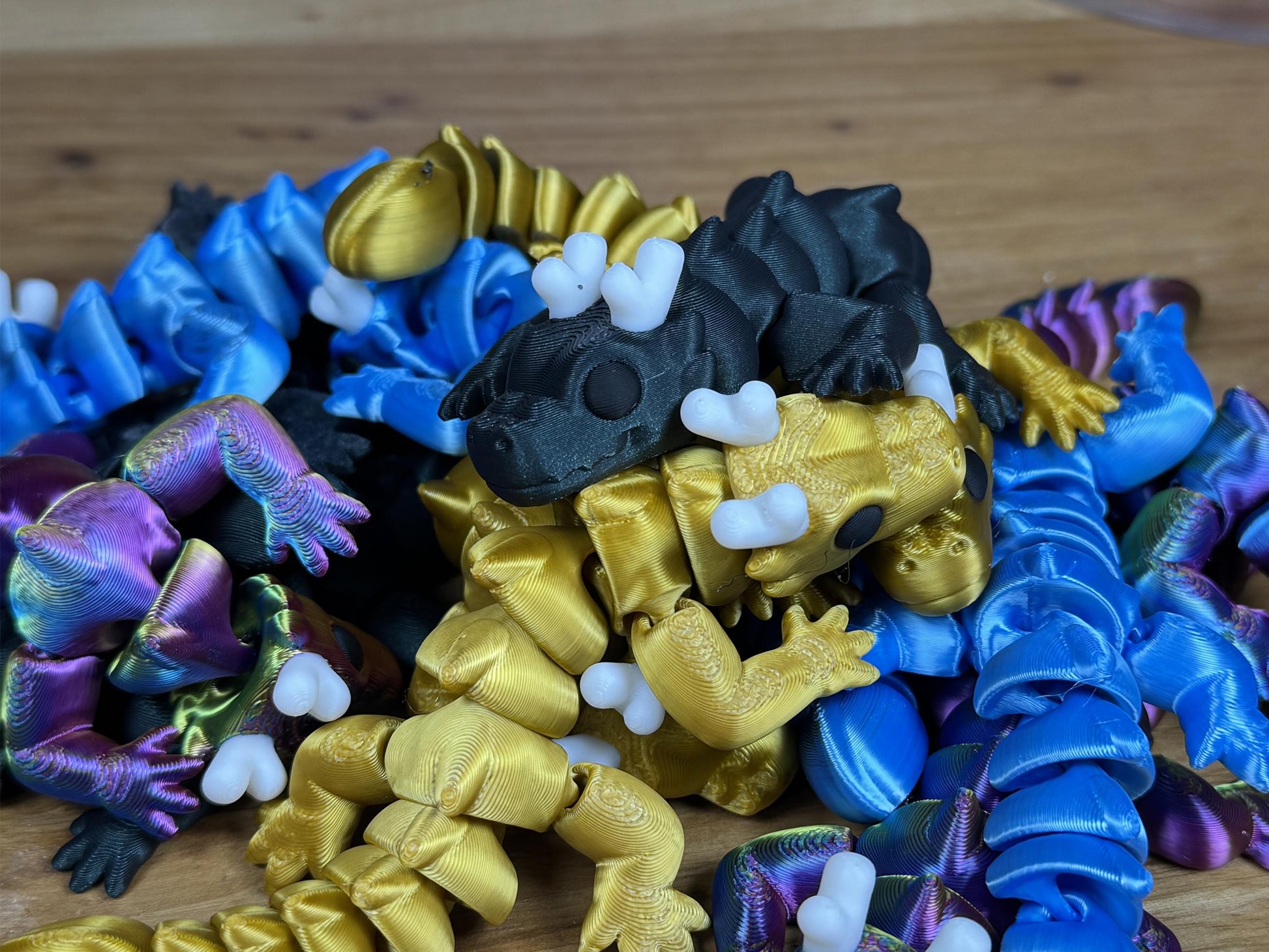 Each Zou Dragon is 3D printed with care using high-quality PLA filament and designed with fully articulating joints, making it fun to pose, display, or fidget with. Whether perched on your shelf, curled up on your desk, or gifted to a fellow fantasy lover, this unique dragon is sure to become a beloved companion.